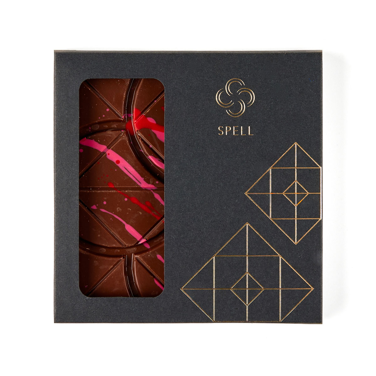 Inside, there is a kaleidoscope of flavors and sensations: three chocolate bars with distinctive flavors, two flavors of caramel, a set of Discovery candies for long explorations, mango and raspberry dragees, sparkling wine, and a candle for cozy moments.