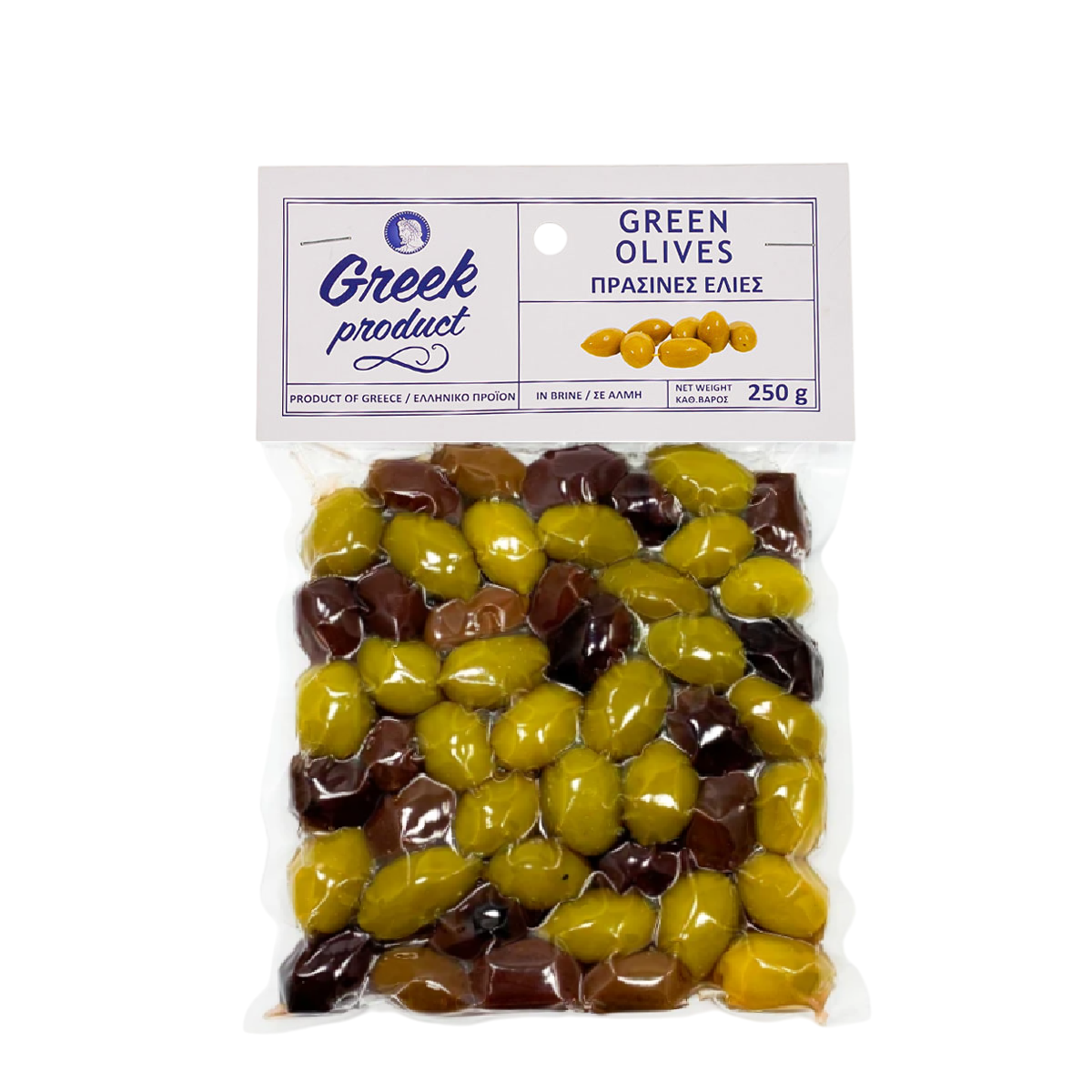 Грецькі оливки з кісточками "Greek Product" маринуються в натуральному розсолі з невеликим додаванням оцту та оливкової олії в бочках. Ягоди мають пікантний смак. Ніжна м'якоть легко відокремлюється від кісточки. Зелені оливки найчастіше подають як самостійну закуску, але також можна додавати їх під час приготування салатів, страв з м'яса, риби та інші.