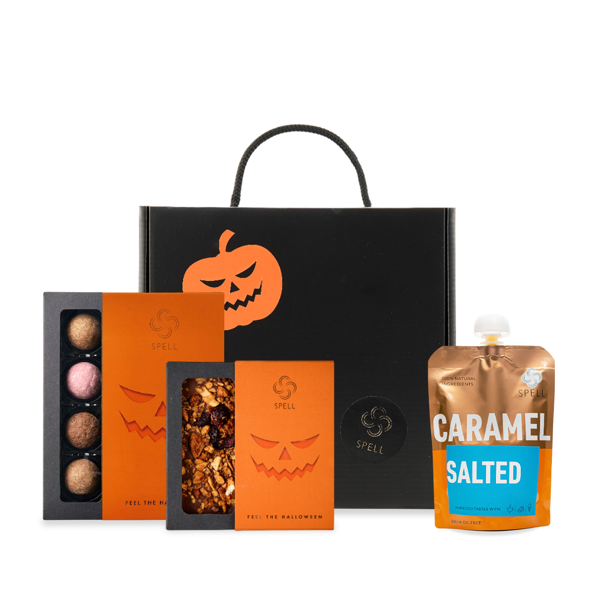 Не можемо уявити Хелловін без солодощів, тому доклали максимум зусиль, щоб подарувати вам святковий настрій. З цим набором ви зможете спробувати молочний шоколад з горіховим асорті, цукерки трюфелі та солону карамель.