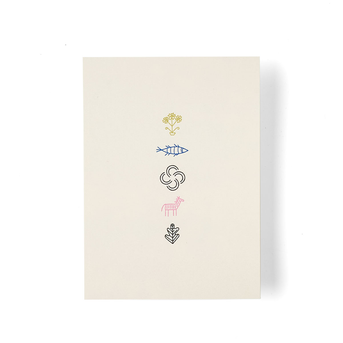 На листівці зібрані всі чотири символи великодньої колекції Spell. Дубовий листок півночі — про витривалість і силу, рибка півдня — про рух і хвилеподібність життя, дерево життя сходу — про родючість, землю і коріння, а західний коник — про силу та енергію.