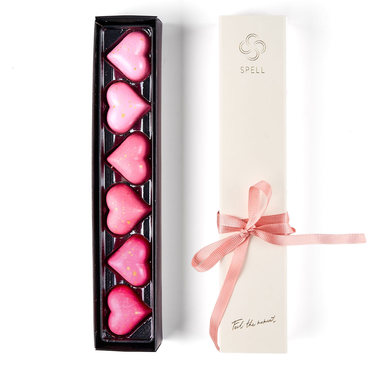 Корпусні цукерки-серця з вишнею-бузиною, вишнею-малиною та сангрією. Кожна цукерка — нагадування, що любов відчувається очима.