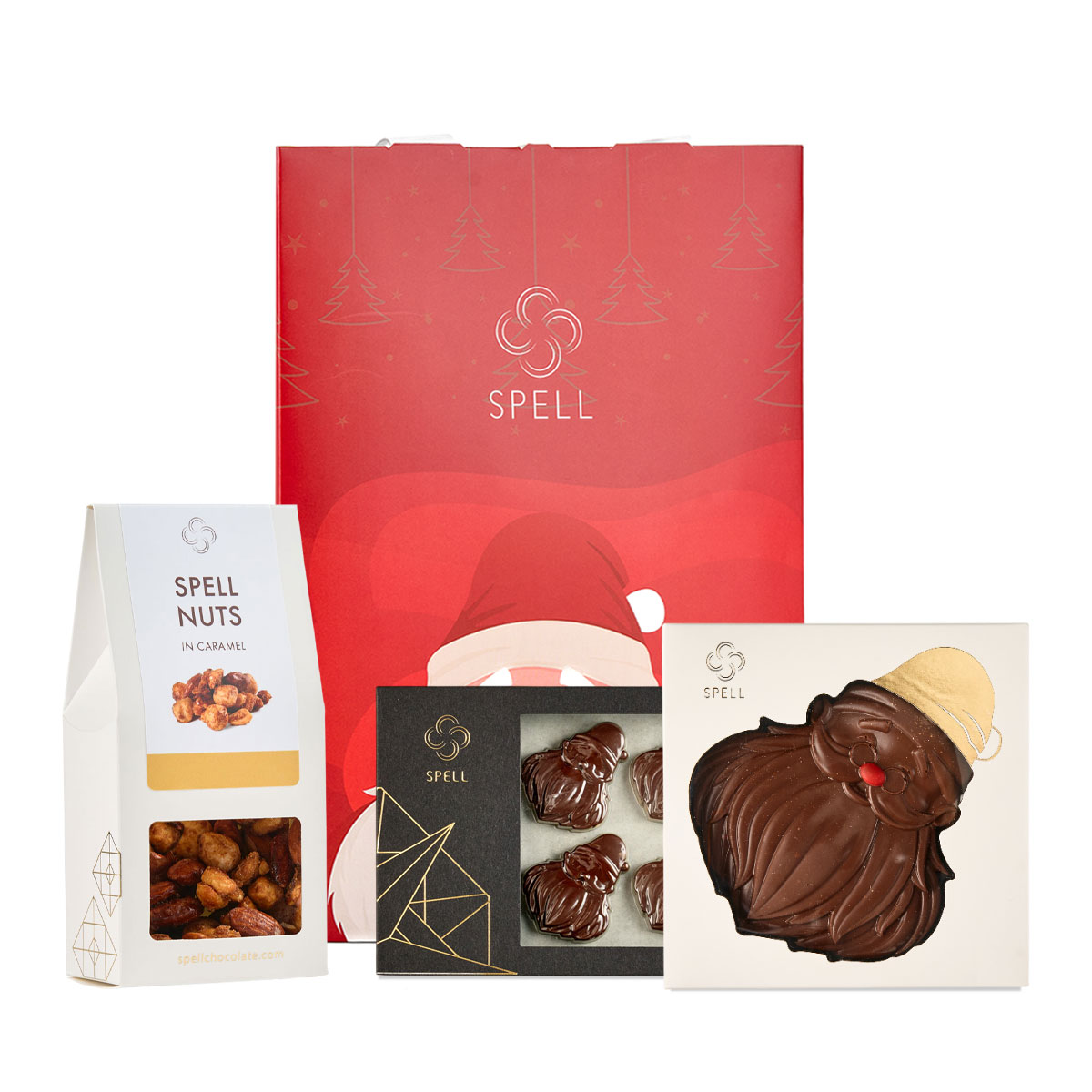 Солодкий сюрприз для святкового настрою: молочний шоколад Санта з подрібненим фундуком, горіхи з карамельною хрусткою скоринкою та шоколадні з тягучою солоною карамеллю Карамельні Санти— маленькі дива, що роблять свято ще яскравішим. А щоб зафіксувати, що диво сталось, ми додали новорічний стікер.