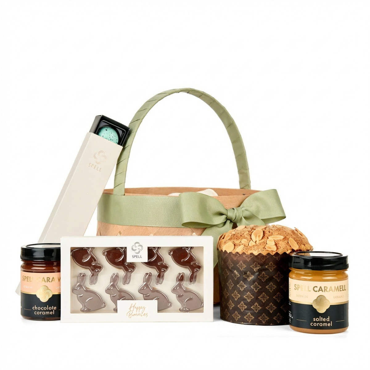 Ми зібрали паску від Марчук хліб, набір цукерок «Перепелиний», сет маршмелоу, шоколадні «Зайченята» та солону і шоколадну карамель. Поєднання знайомих смаків, які здатні здивувати, коли їх поєднуєш.