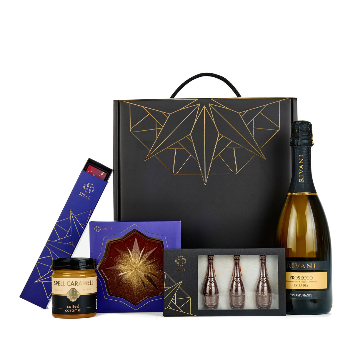 Цей набір — готовий сценарій для дивомиті та передчуття свята: ігристе просеко, шоколадна зірка та пляшечки Просеко, що смакують, як дванадцять ударів годинника опівночі.