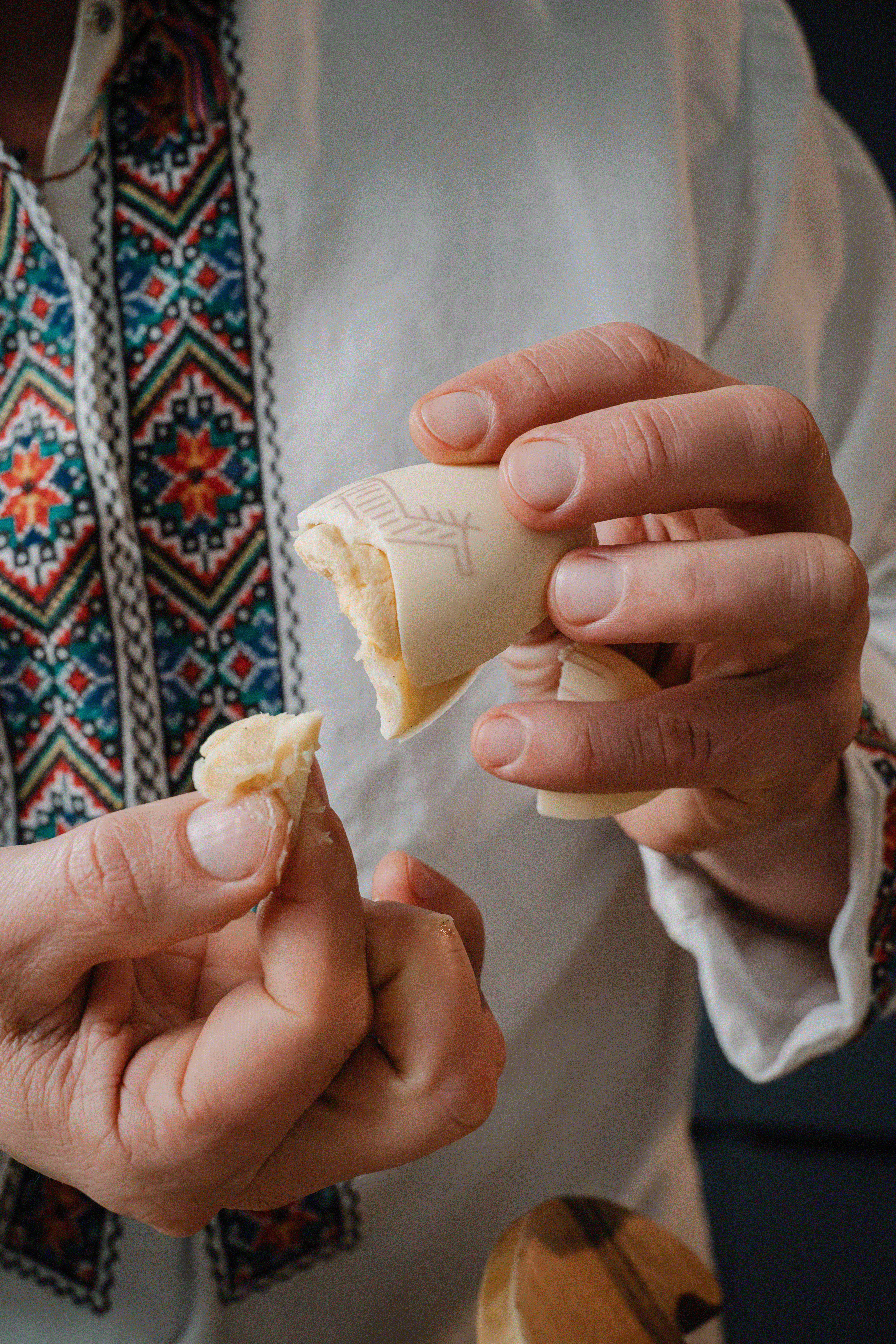 Смак писанок — білий шоколад із начинкою з м’яким маршмеллоу.