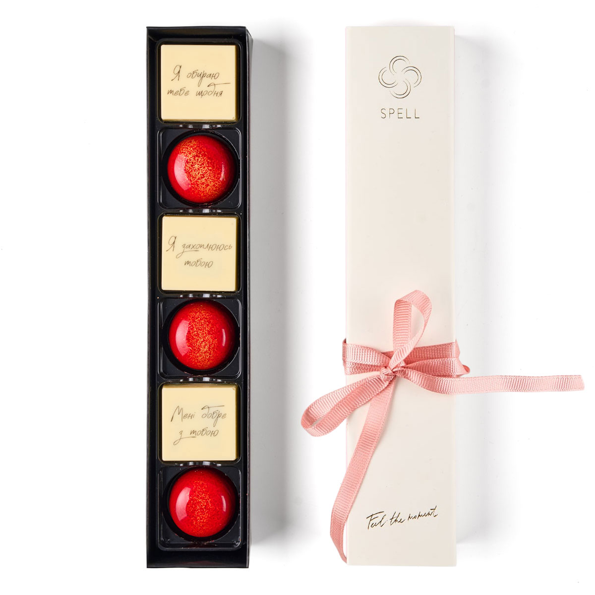Набір цукерок з написами-посланнями. Про щоденний вибір, захоплення і стан, коли разом легко.