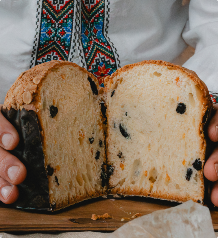 Квашені лимони з сіллю, цвіклі, каперси з бузини, шоколад, карамель, сети цукерок — і, звісно, паска. Традиційна, волога, але пухка. З фруктами, близькими українцям, які не перекрикують смак здоби, а підтримують його.
